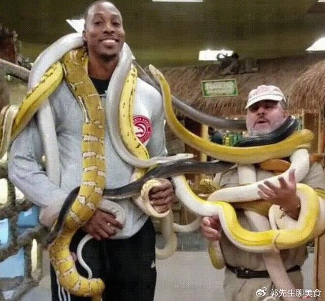 霍华德以出色的防守和强大的内线统治力著称,三次荣膺最佳防守球员。赛场上的他活力四射,阳光开朗,就像一个永远充满能量的大男孩。可谁能想到,这位阳光硬汉的特殊癖好竟然让人有些“毛骨悚然”——养蟒蛇。霍华德对蟒蛇的喜爱达到了痴迷的程度,篮球之外,他的最大乐趣就是与蟒蛇相伴。他经常在社交媒体上分享自己与蟒蛇的亲密合照,那画面既惊险又刺激,让人不禁为他的勇气和独特爱好而惊叹。